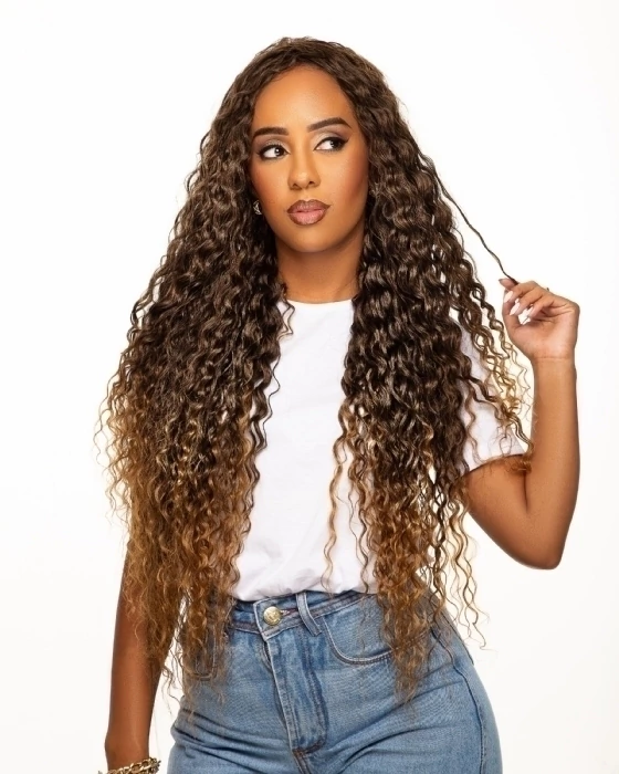O Hello Miga é um cabelo premium em fibra de colágeno 100%, desenvolvido para quem busca alongamento natural, leve e durável. Com 80 cm de comprimento e cachos abertos 2C, o modelo cria ondas suaves com movimento realista e toque macio.