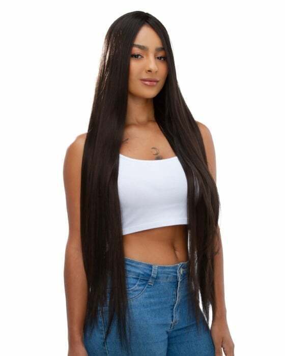 O modelo Para Tudo da Be You é feito em fibra de colágeno 100%, oferecendo cabelo liso de 80 cm com brilho intenso e toque sedoso. Cada fio exala elegância, glamour e sofisticação, garantindo um visual natural, macio e de longa durabilidade.